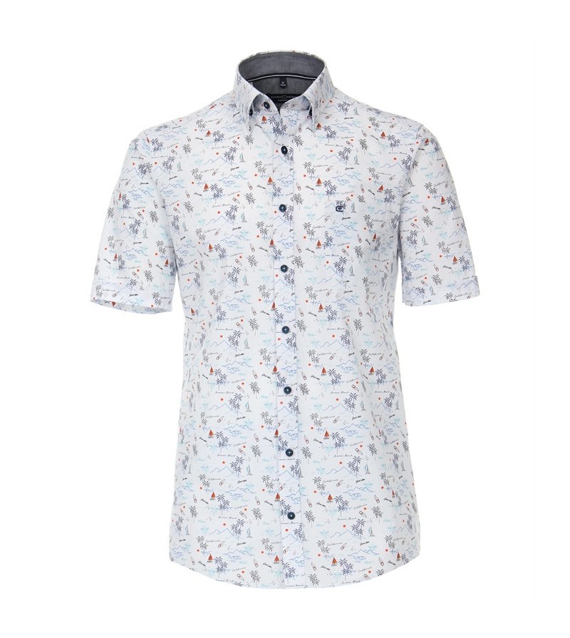 Big Man Hemd korte mouw comfort fit kent kraag borstzakje leuk motief niet strijken sportieve look 100%katoen 40°was kleur: blauw