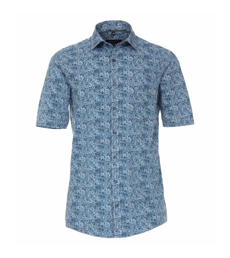 Big Man Hemd korte mouw comfort fit kent kraag borstzakje leuk motief niet strijken sportieve look 100%katoen 40°was kleur: blauw