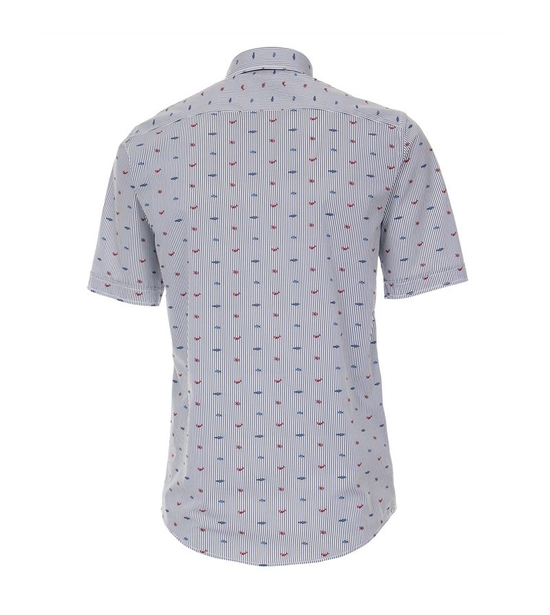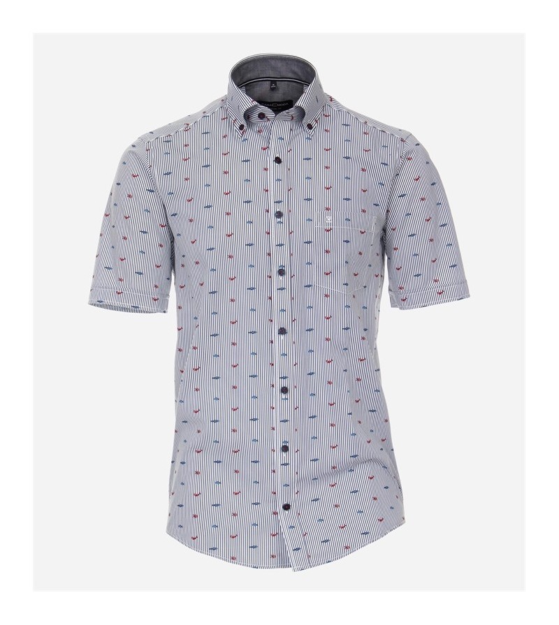 Big Man Hemd korte mouwen comfort fit kent kraag borstzakje easy care comfortabel leuk motief kwaliteit 100%katoen kleur: rood/ navy/ wit
