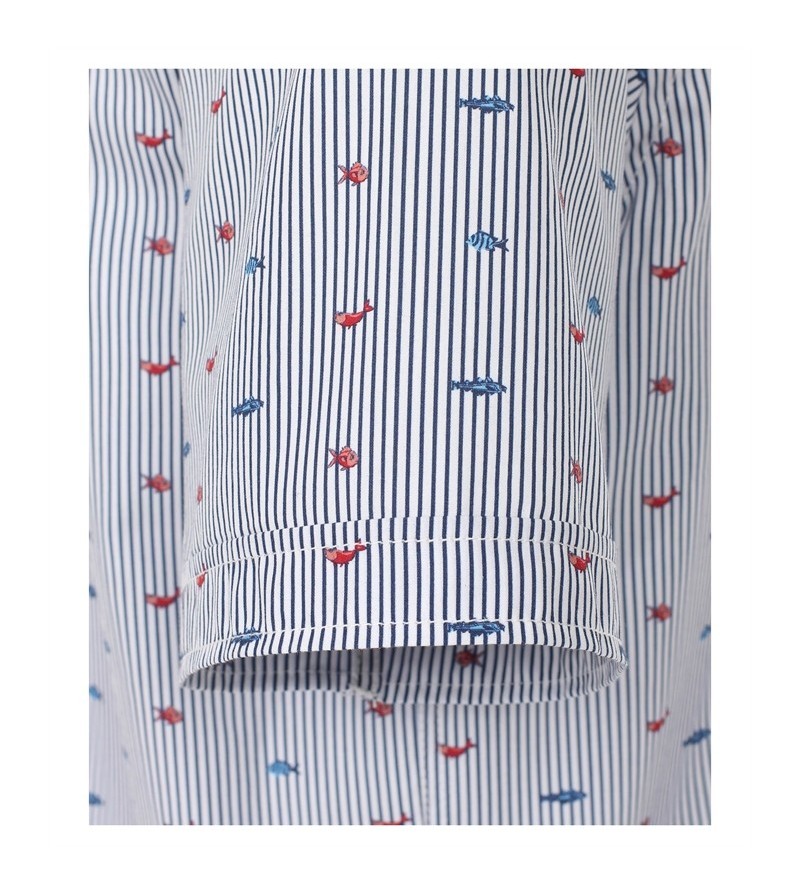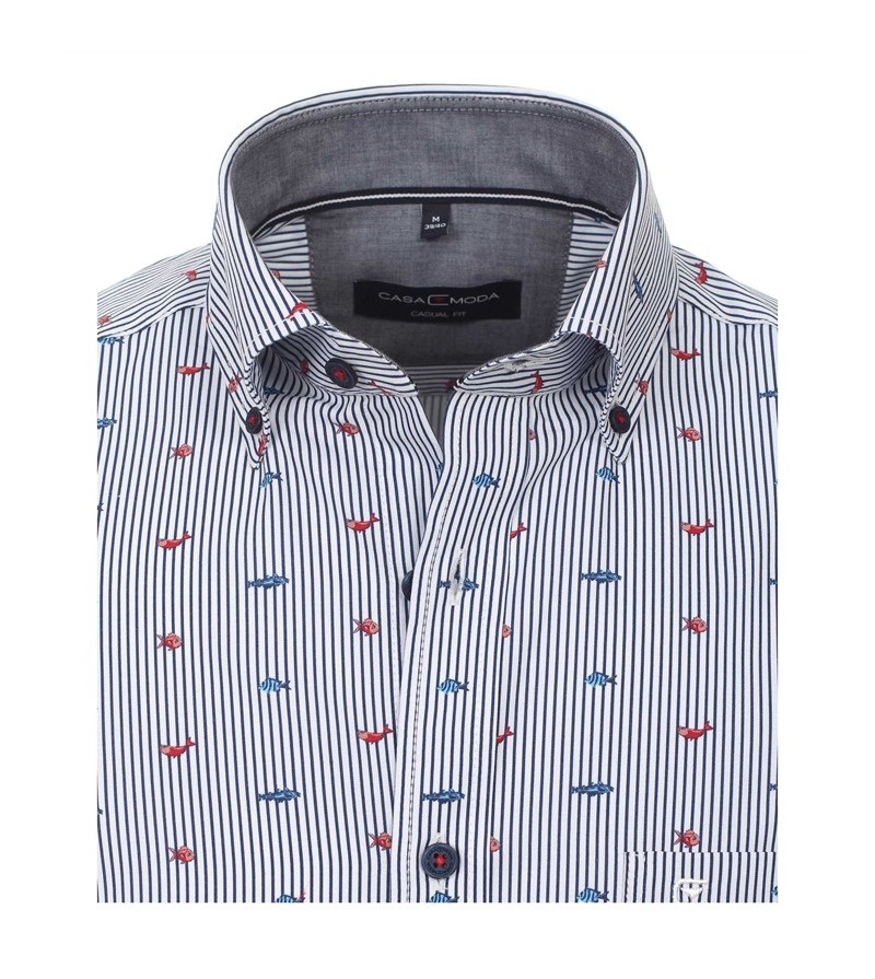 Big Man Hemd korte mouw comfort fit kent kraag borstzakje leuk motief niet strijken sportieve look 100%katoen 40°was kleur: wit / blauw