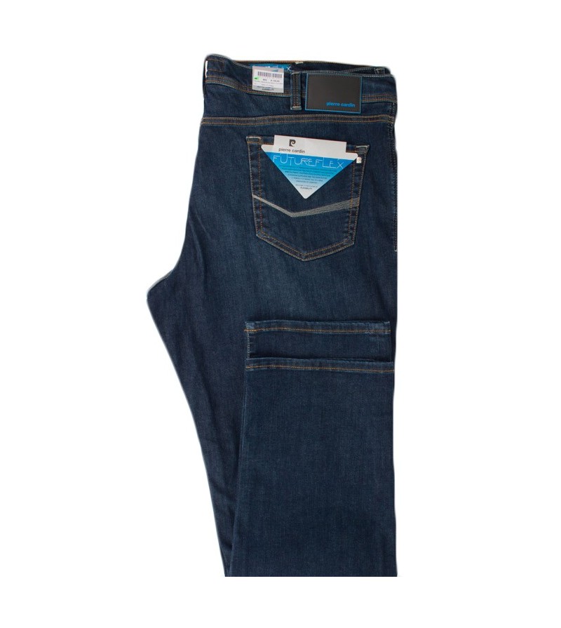 Futureflex - Tussenbeenlengte 32 inche lage taille futureflex 5 pocket donkere kleur netjes lusjes voor riem comfortabel 82%katoen, 16%poleyster 2%elasthaan 30°was kleur: dark denim