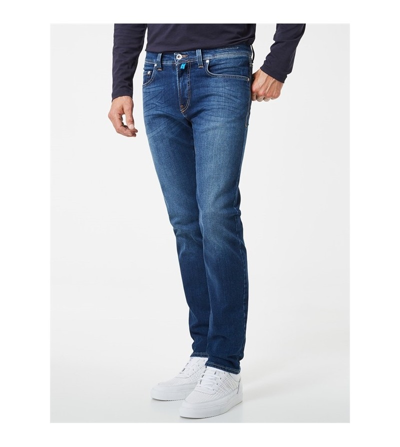 Merk: Pierre Cardin FutureFlex 3851 8880 44 comfortabel lengte 40 lusjes voor riem 5 pocket afgewassen look sportieve look zachte wassing met moustachen 88%katoen, 8% polyester, 4%elasthaan 30°was kleur : lichte jeans