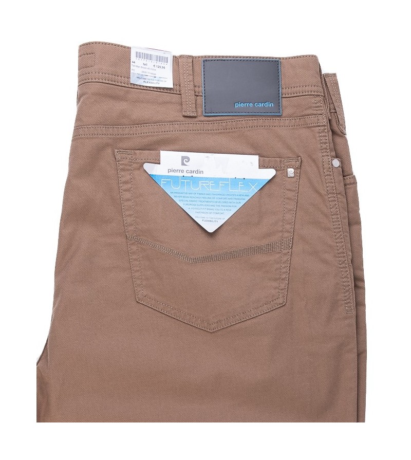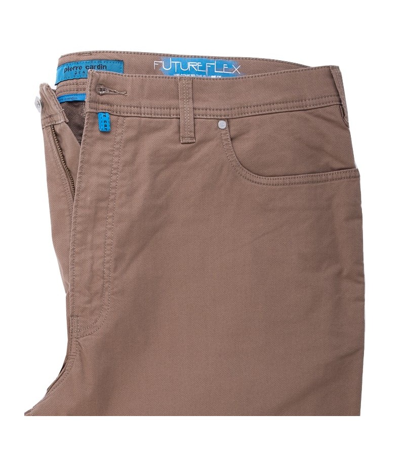 Merk: Pierre Cardin FutureFlex 3851 2400 27 5 pocket zomerbroek stof met stuctuurtje zeer trendy lusjes voor riem comfortabel 100% kleurvast 87%katoen, 9%poleyster, 4%elasthan 30°was kleur: beige