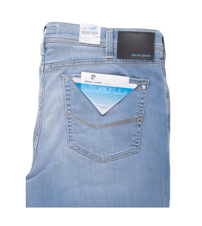 Merk: Pierre Cardin FutureFlex 3851 8880 96 comfortabel zomer jeans lusjes voor riem 5 pocket afgewassen look met moustachen licht schakeringen sportieve look zachte wassing met moustachen 89%katoen, 9%polyester, 2%elasthaan 30°was kleur: stone washed denim