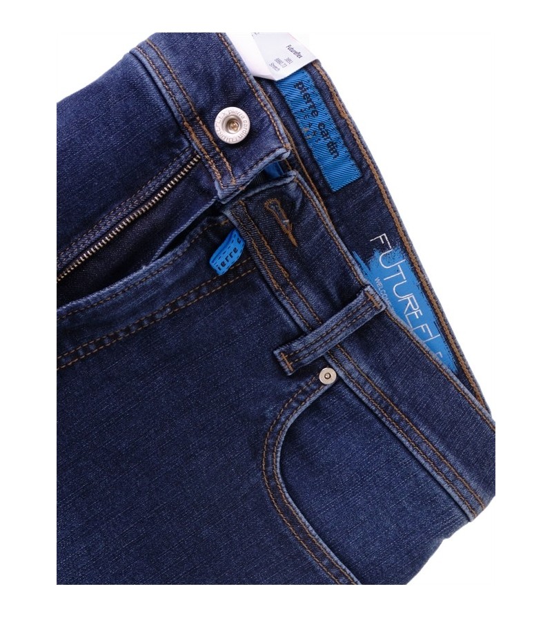 Futureflex 3851 8885 42 lage taille FutureFlex 5 pocket donkere kleur licht effecten met moustachen lusjes voor riem comfortabel 100%kleurvast dunne zomerkatoen 81%katoen, 17%poleyster, 2%elasthaan 30°was kleur: blue / black