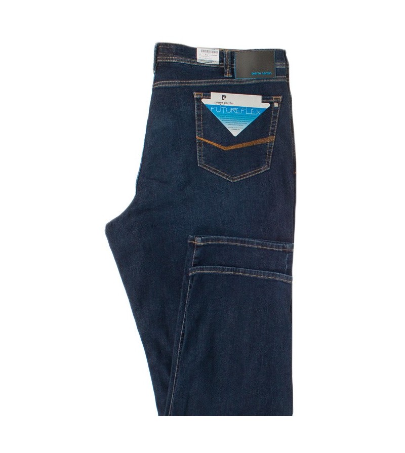 Futureflex - Tussenbeenlengte 32 inche lage taille futureflex 5 pocket donkere kleur netjes lusjes voor riem comfortabel 73%katoen, 18%poleyster 8%viscose 30°was 100% kleurvast kleur: navy washed denim