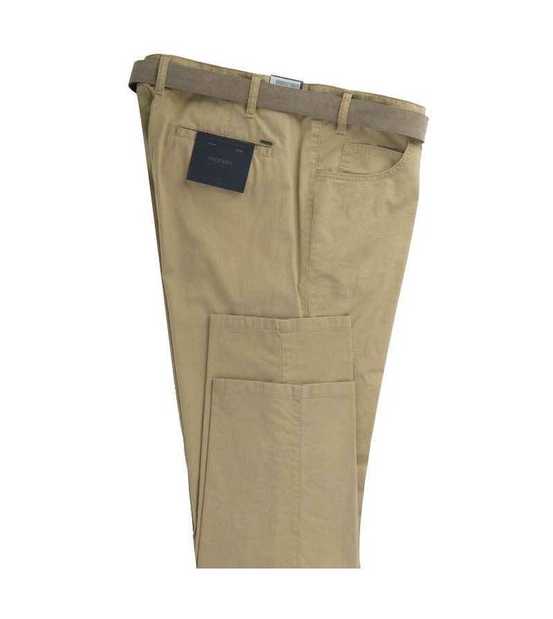 Big Man Broek lage taille model Gerard met bijpassende riem 7 pocket comfortabel zomerbroek netjes afgewerkt 68%katoen, 2%elasthaan, 30%lyocell 40°was kleur : beige