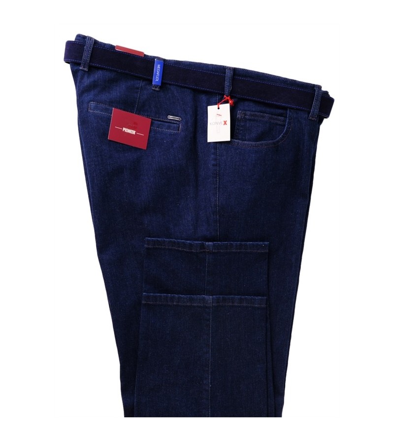 Big Man Broek 1459 9966 02 swing pocket dunne stof achterzak met paspel sluiting soepele jeansstof lage taille, speciaal voor het buikje met bijpassende riem 2 ronde zakken 2 achterzakken met knoop comfortabel 46%katoen, 46%lyocell, 2%elasthaan 40°was kleur : dark stone washed, clean