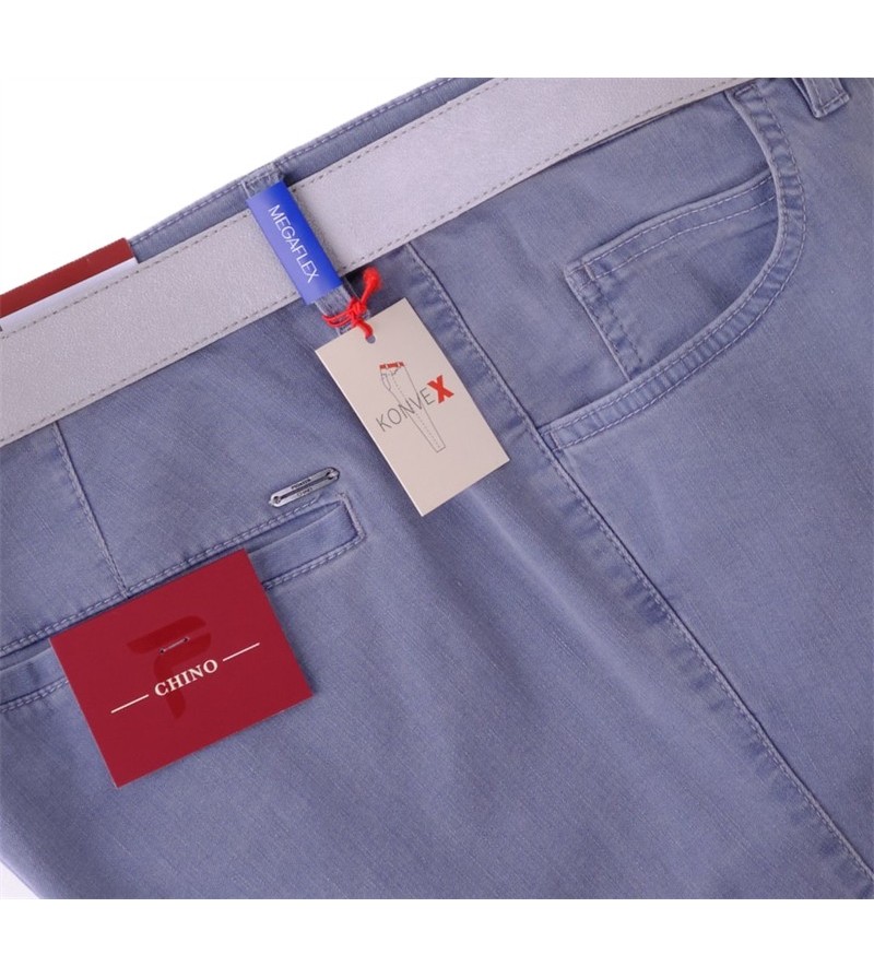 Big Man Broek 1459 9766 05 soepele jeansstof lage taille met bijpassende riem swingpocket 2 ronde zakken 2 achterzakken met paspel sluiting comfortabel 46%katoen, 46%lyocell, 2%elasthaan 40°was kleur: stone washed, clean