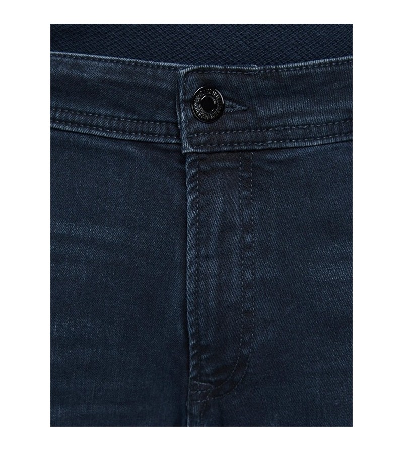Glenn Tussenbeenlengte 34 inche slim fit met knopensluiting tussenbeenlengte 32 inche slim thigh slim knee narrow leg opening model: Glenn los op de bovenbenen valt zoals Pierre Cardin jeans lage taille 93%katoen 5%elastomuliester 2%elasthan kleur: stone washed