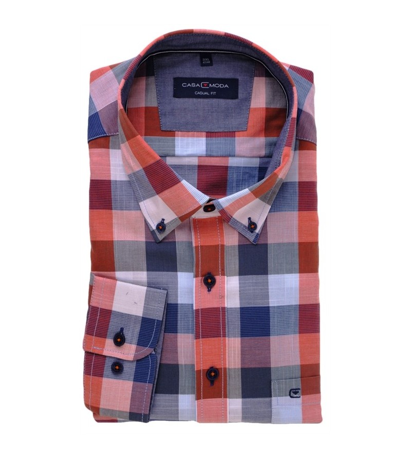 Extra Lang Overhemd regular fit extra lange romplengte, speciaal voor de buik goede pasvorm strijkvrij button down kraag fijn geweven 100%katoen kleur: ruit