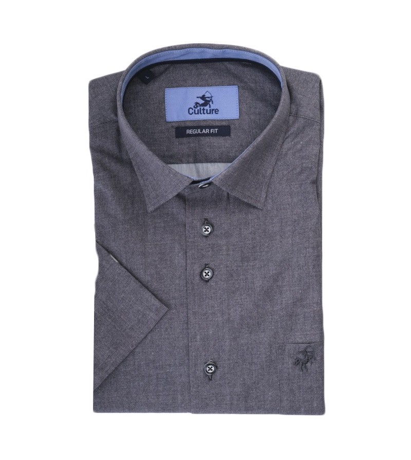 tall Man Hemd regular fit korte mouw kent kraag netjes afgewerkt borstzakje comfortabel streepjesmotief kwaliteit goede lengte 100%katoen kleur: grijs
