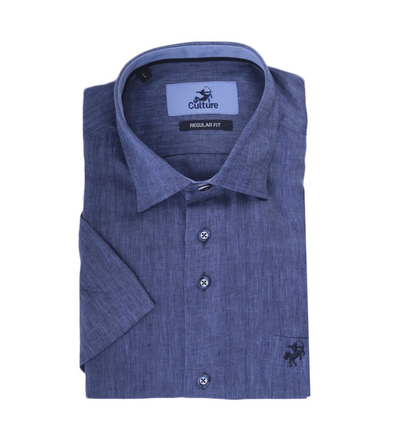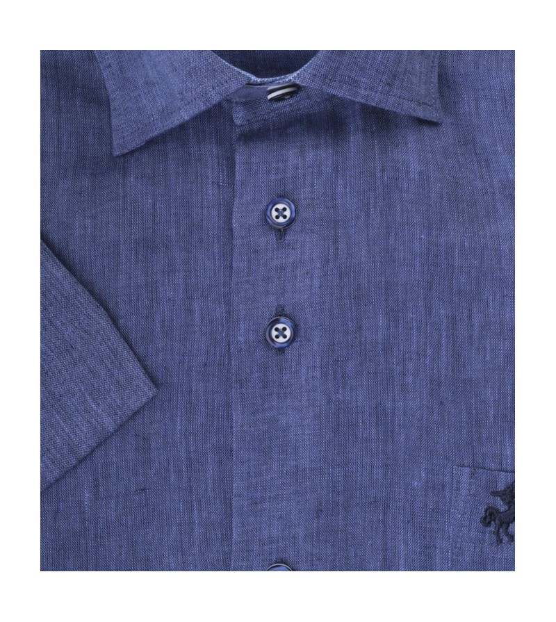Tall Man Hemd regular fit korte mouw borstzakje kent kraag netjes afgewerkt comfortabel goede lengte 100%katoen kleur : blauw