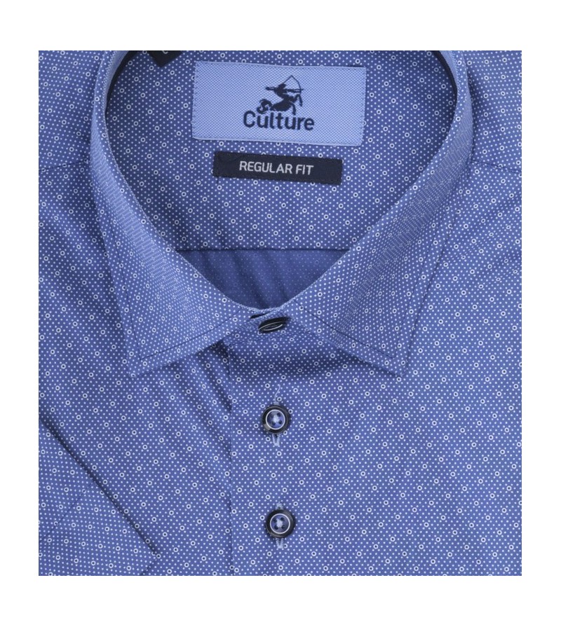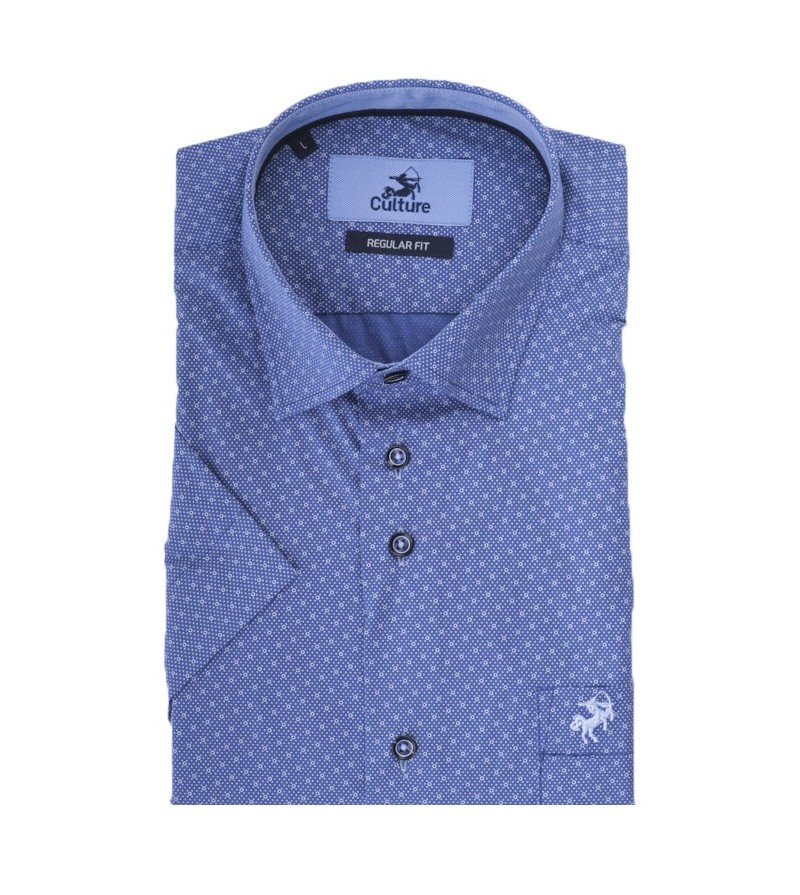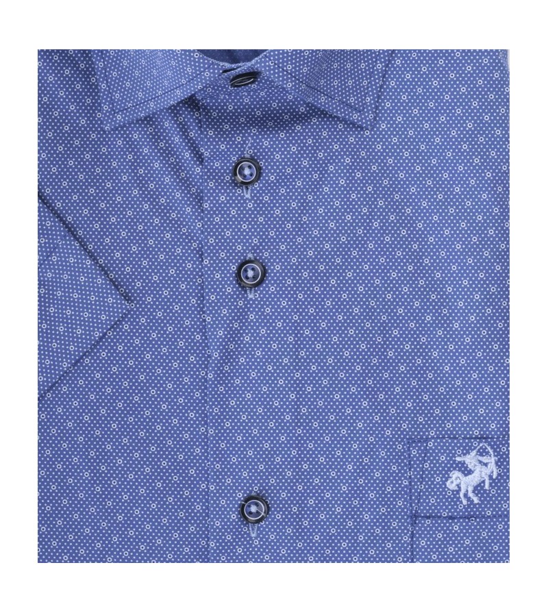 Tall Man Hemd regular fit korte mouw borstzakje kent kraag netjes afgewerkt leuke print comfortabel goede lengte 100%katoen kleur : blauw