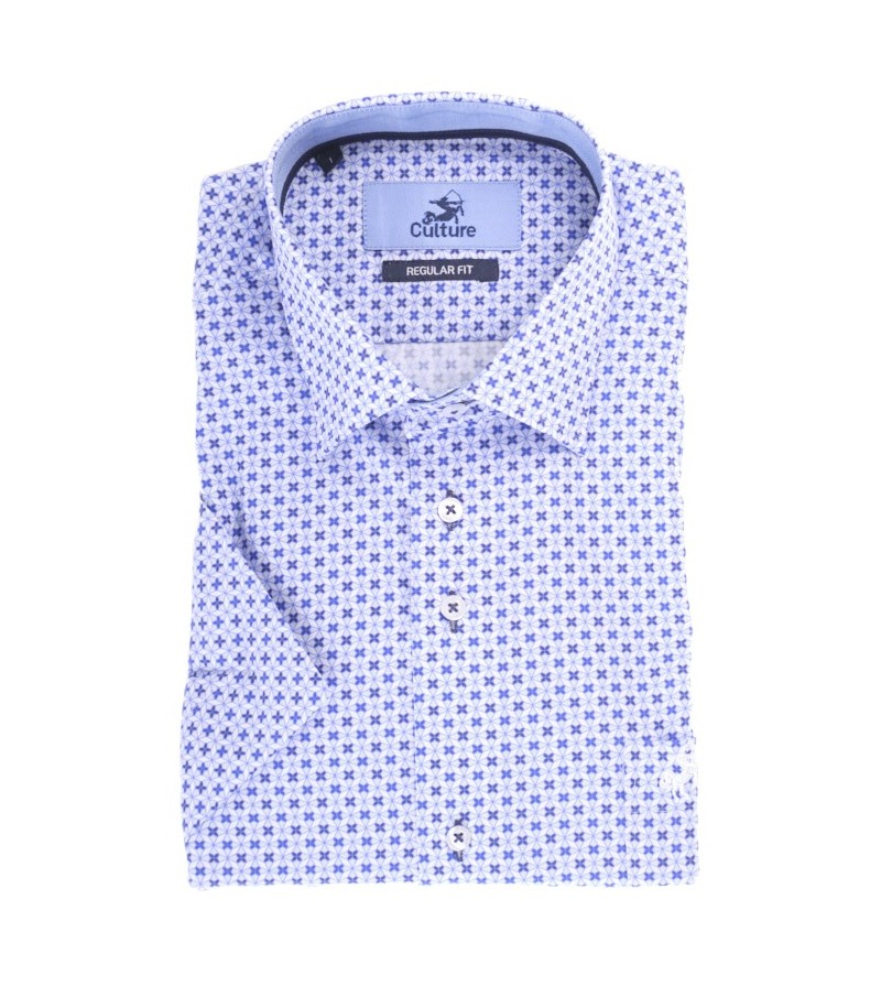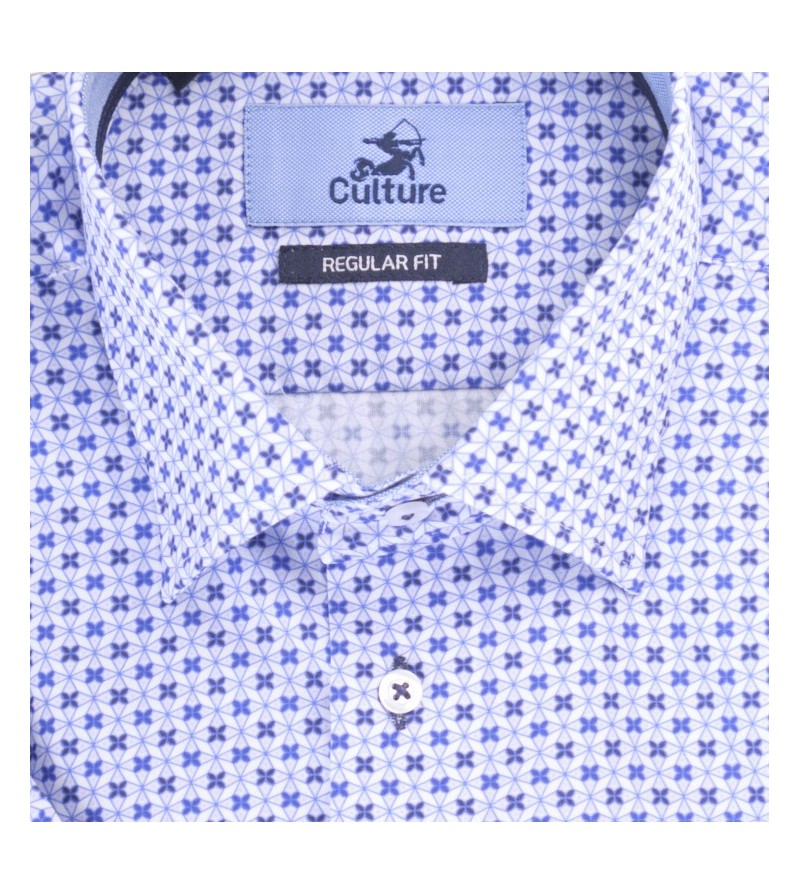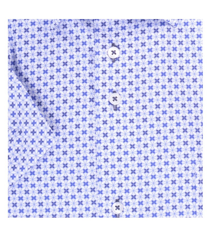 Tall Man Hemd regular fit korte mouw borstzakje kent kraag netjes afgewerkt leuke print comfortabel goede lengte 100%katoen kleur : blauw