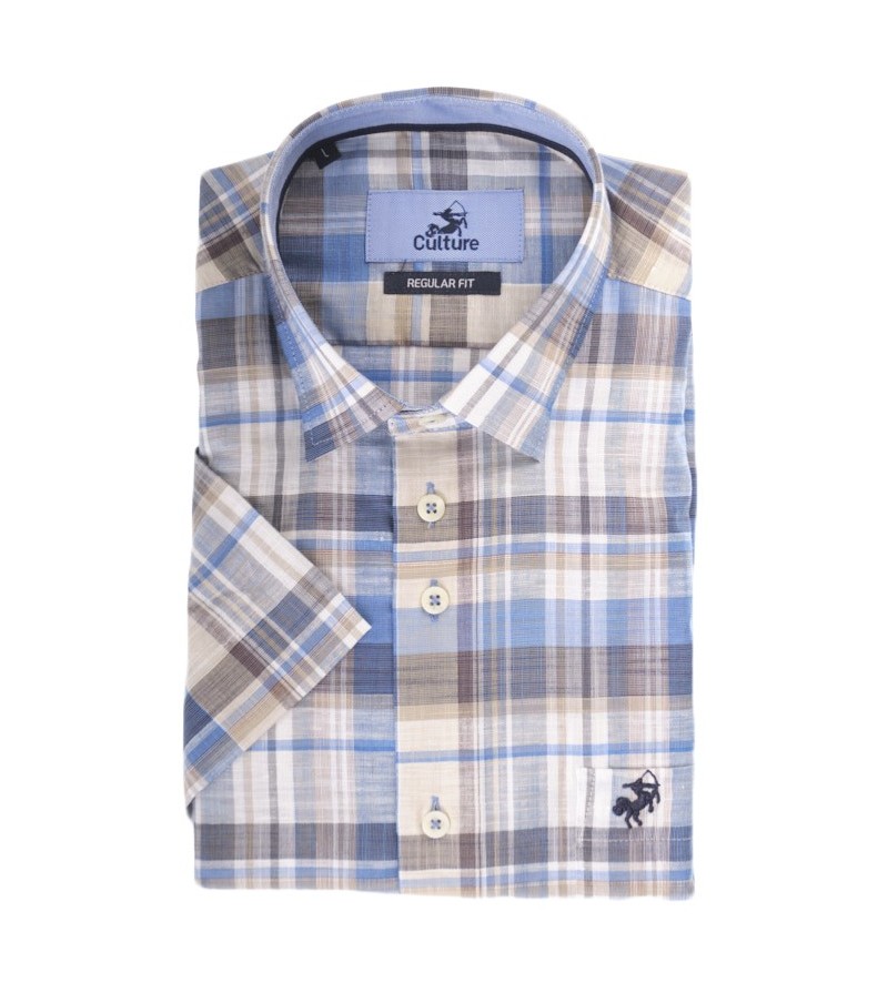 Tall Man Hemd regular fit korte mouw kent kraag netjes afgewerkt comfortabel goede lengte leuke opdruk 100%katoen kleur: blauw / beige