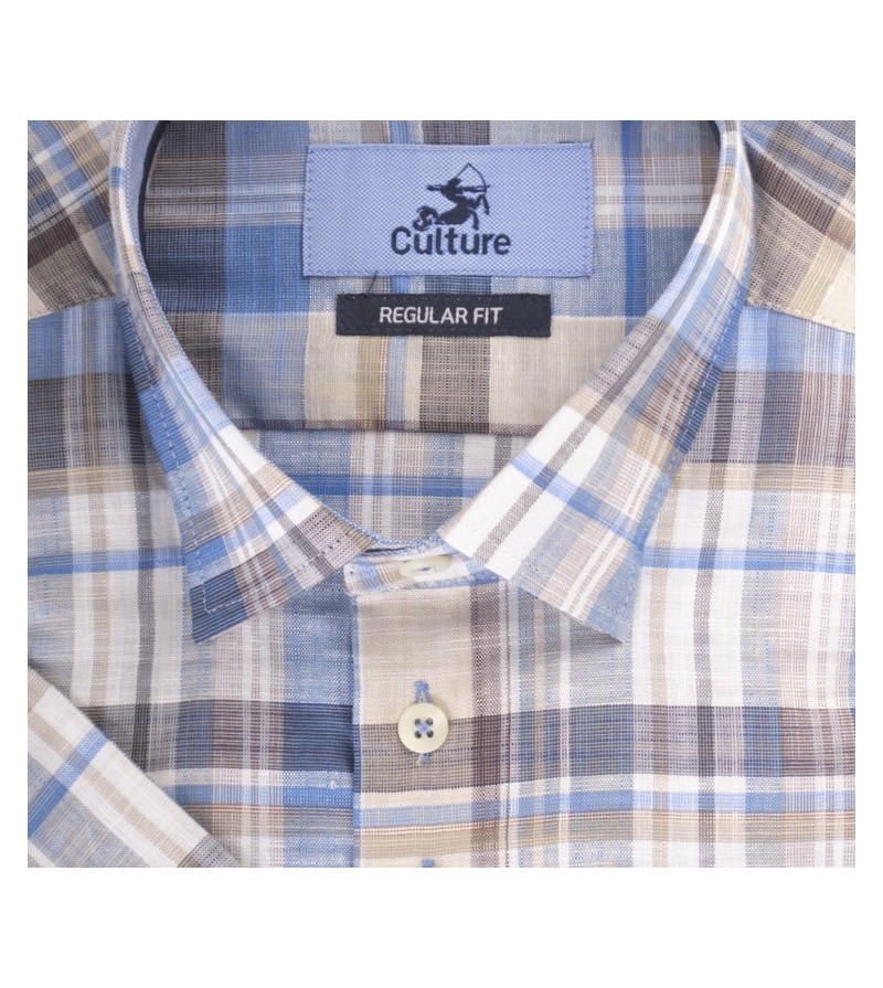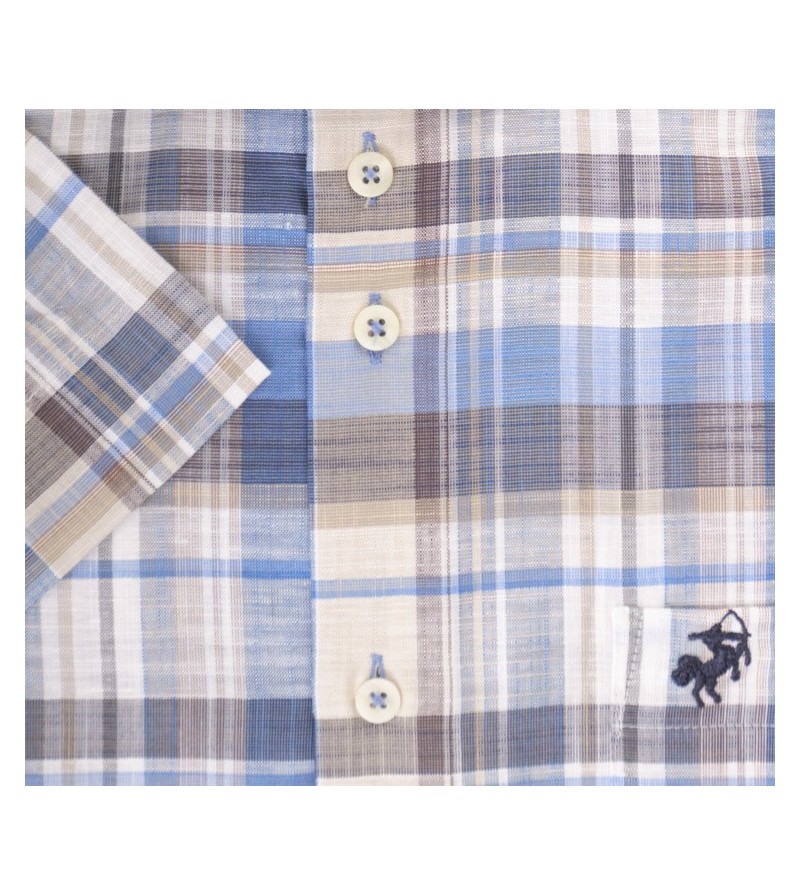 Tall Man Hemd regular fit korte mouw kent kraag netjes afgewerkt borstzakje comfortabel ruitjesmotief kwaliteit goede lengte 100%linnen kleur : navy