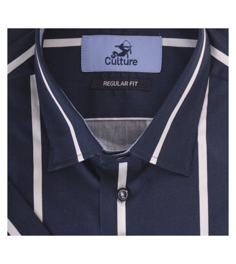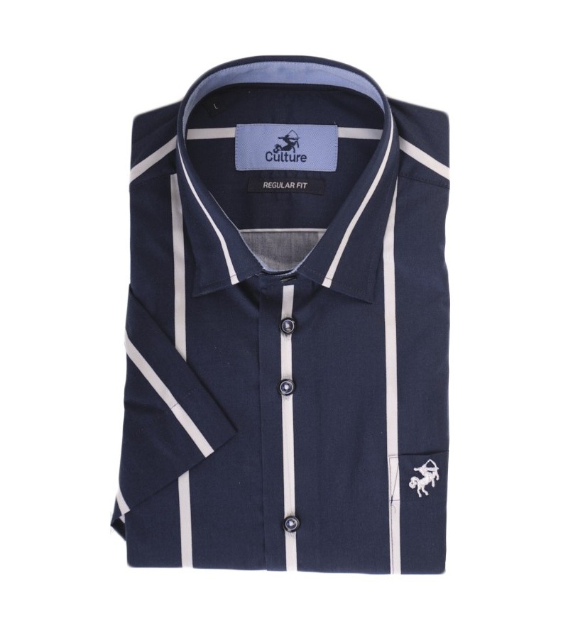 tall Man Hemd regular fit korte mouw kent kraag netjes afgewerkt borstzakje comfortabel streepjesmotief kwaliteit goede lengte 100%katoen kleur: navy / rood / wit