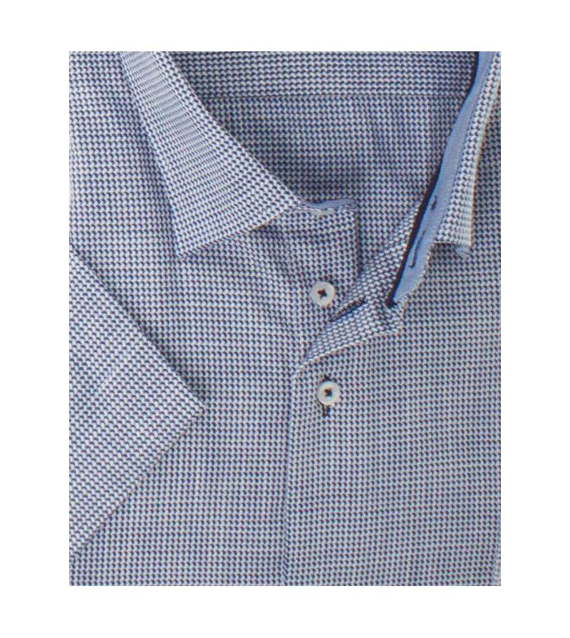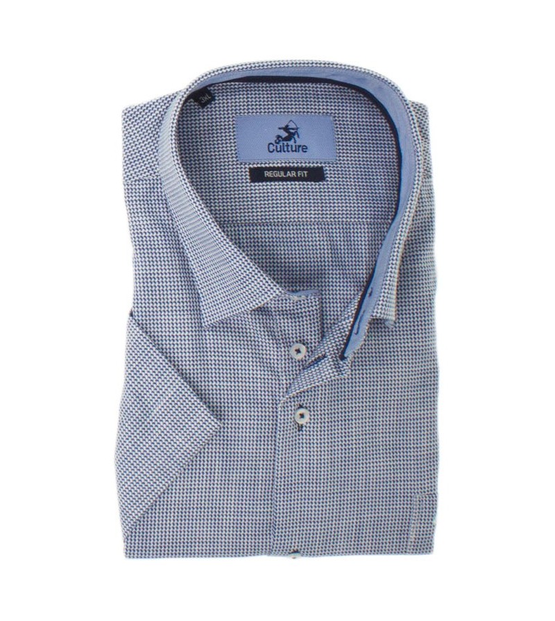 Tall Man Hemd regular fit korte mouw borstzakje kent kraag netjes afgewerkt leuke print comfortabel goede lengte 100%katoen kleur : blauw