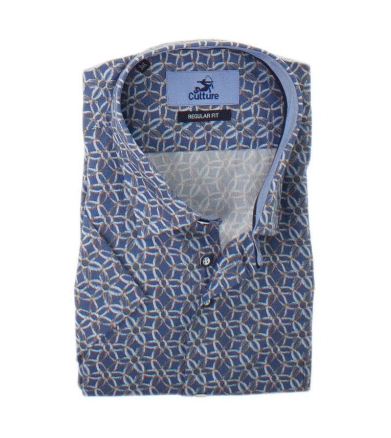 Tall Man Hemd regular fit korte mouw kent kraag netjes afgewerkt comfortabel goede lengte leuke opdruk 100%katoen kleur: blauw / beige