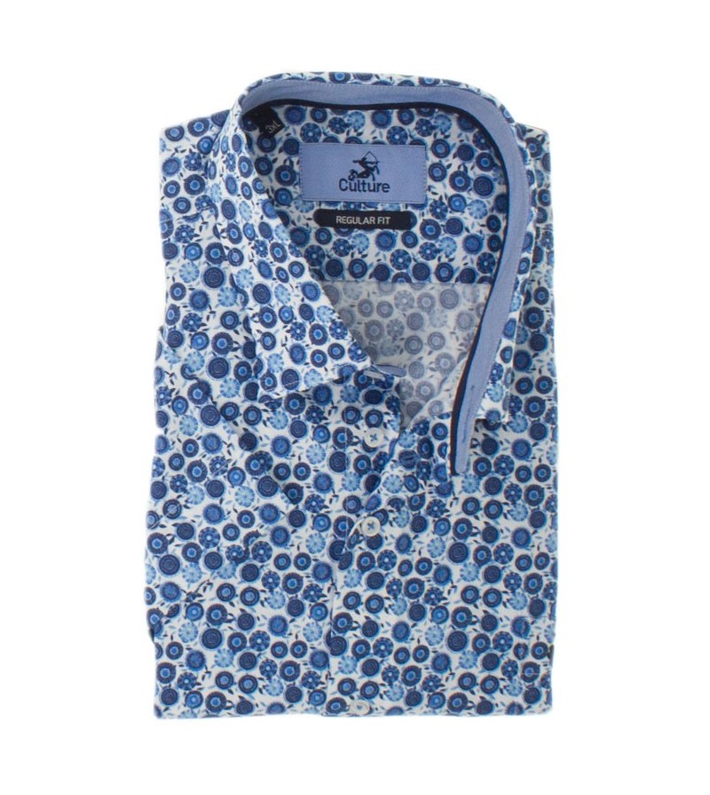 Tall Man Hemd regular fit korte mouw kent kraag netjes afgewerkt comfortabel goede lengte leuke opdruk 100%katoen kleur: blauw / beige