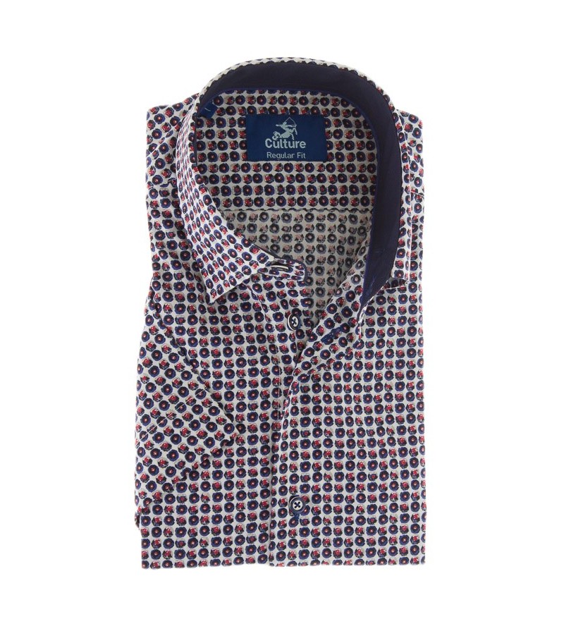 Tall Man Hemd regular fit korte mouw kent kraag netjes afgewerkt comfortabel goede lengte leuke opdruk 100%katoen kleur: blauw / beige