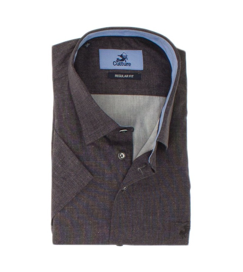 Tall Man Hemd regular fit korte mouw borstzakje kent kraag netjes afgewerkt comfortabel goede lengte 100%katoen kleur : bruin