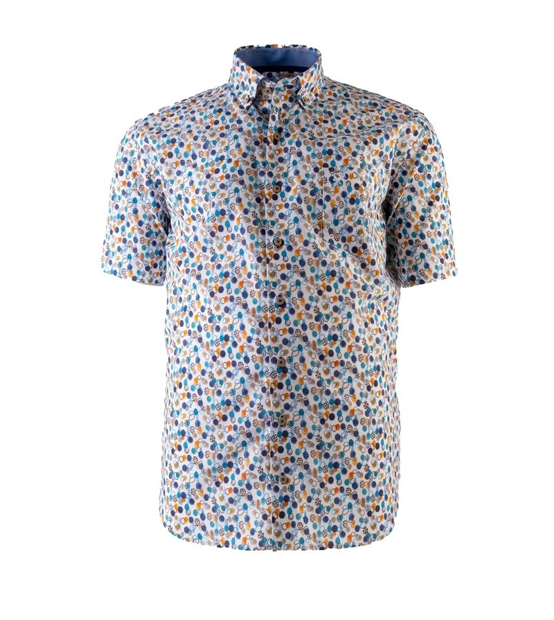 Big Man Hemd korte mouw comfort fit button down kraag borstzakje leuk motief zomers comfortabel kwaliteit 100%katoen 40°was kleur: oranje