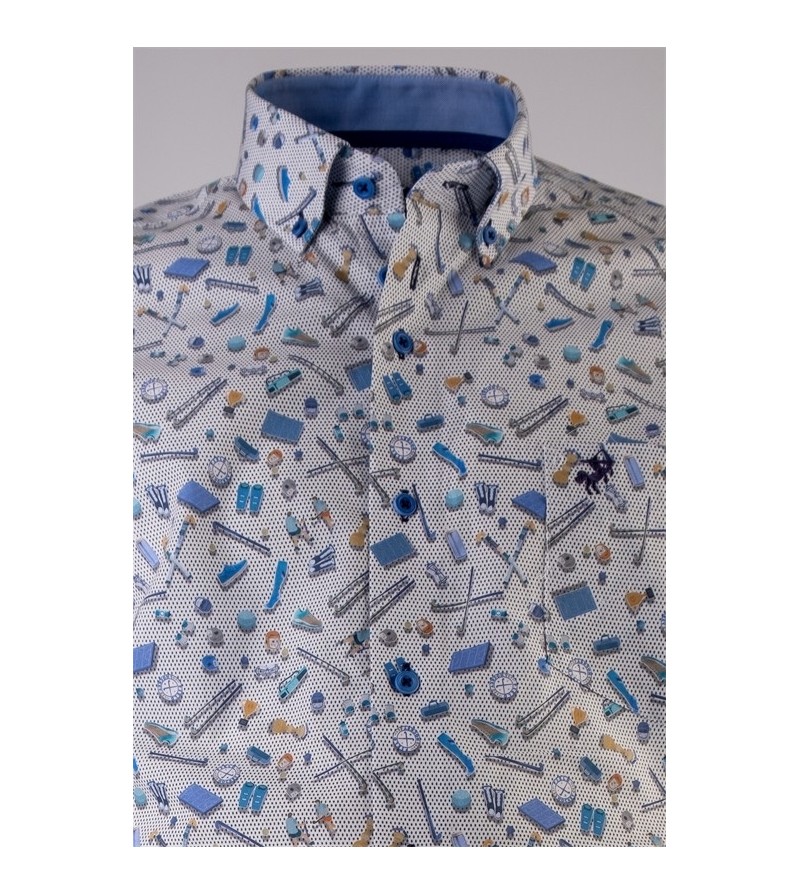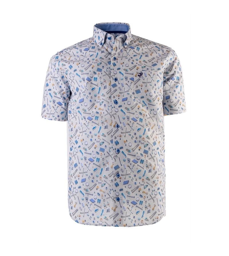Big Man Hemd korte mouwen comfort fit kent kraag borstzakje easy care comfortabel leuk motief kwaliteit 100%katoen kleur: blauw/ navy/ wit