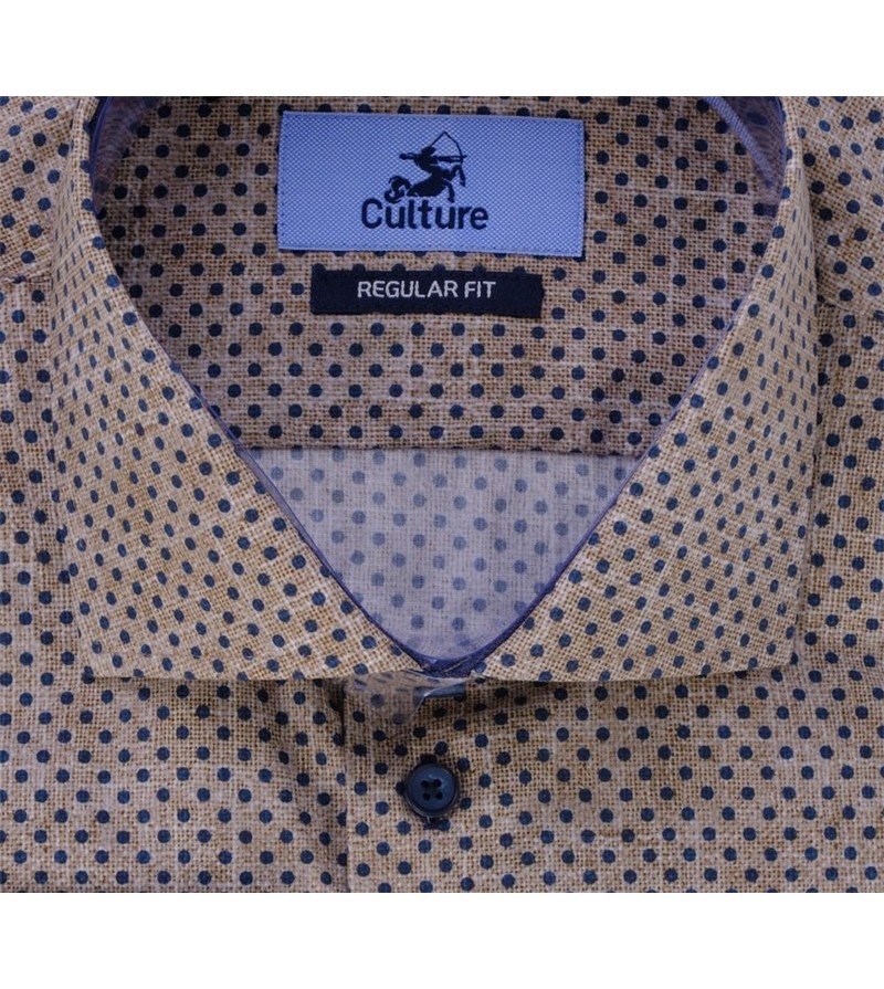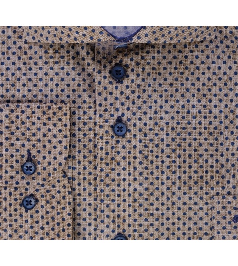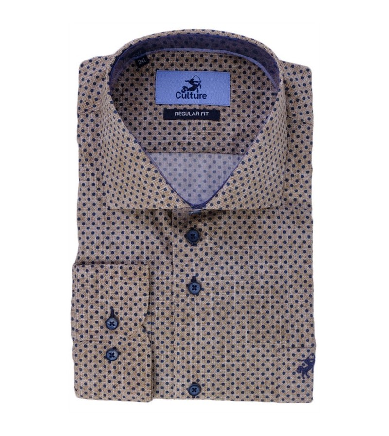 Grote Maten Overhemd lange mouw strijkvrij met borstzakje kent kraag REGULAR fit goede pasvorm goede lengte krimpt niet bij het wassen 100%katoen prachtige print speciaal voor onze winkel laten maken! pièce unique kleur: blauw / beige / bruin