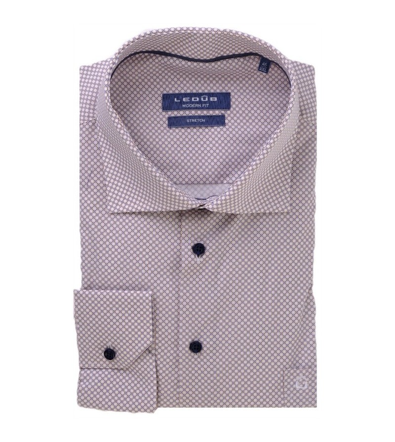 Tall Man Hemd lange mouw tailored fit kent kraag bolletjes motief met navy contrasten sportief netjes afgewerkt comfortabel 100%katoen 40°was kleur: groen