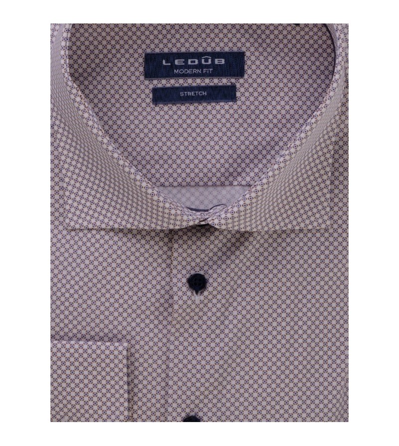Tailored Fit Hemd lange mouw 76 cm tailored fit geen borstzakje kent kraag non iron netjes afgewerkt 100%katoen 40°was beige knopen kleur: beige / licht blauw