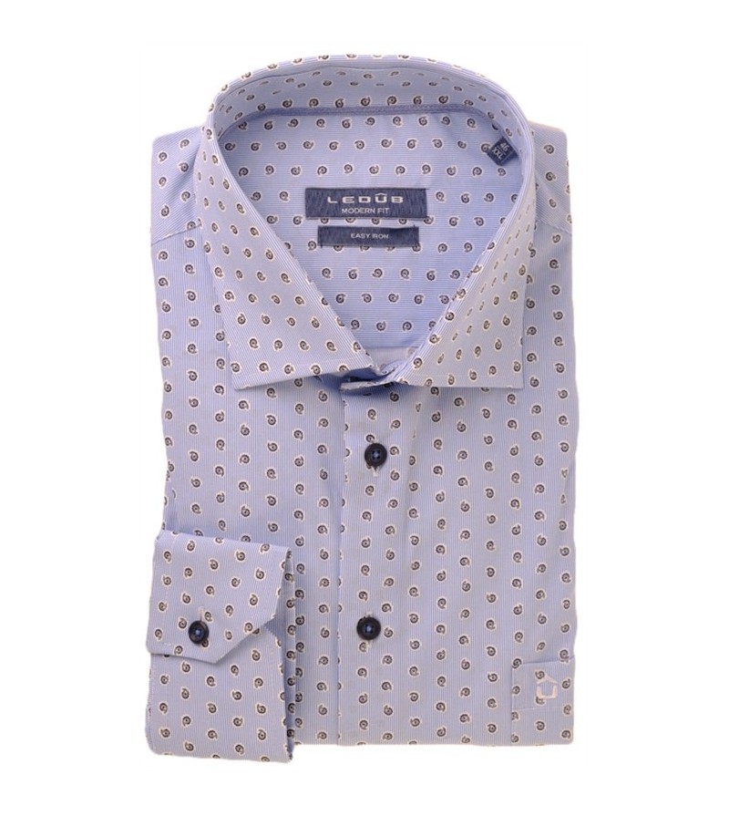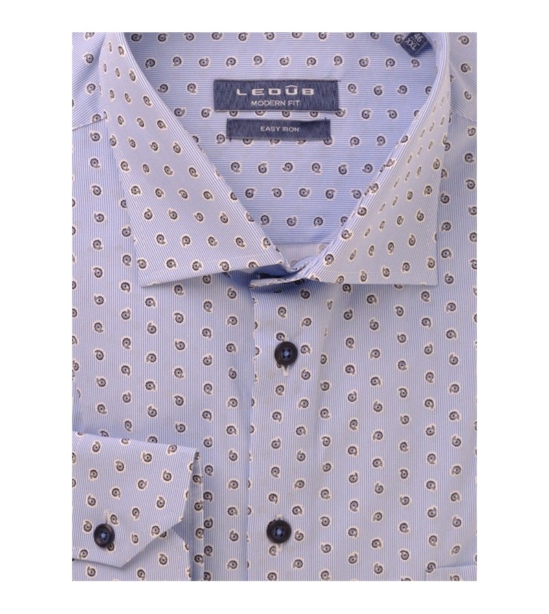 Tall Man Hemd lange mouw tailored fit strijkvrij italiaanse kraag leuk motief sportief comfortabel 100%katoen 40°was kleur: blauw