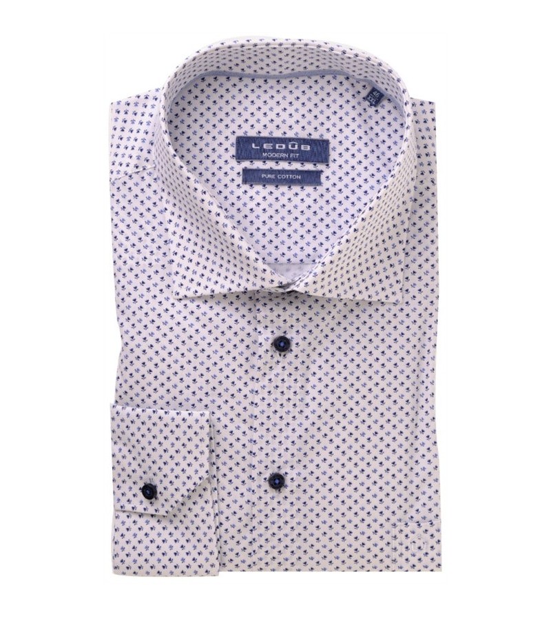 Tall Man Hemd lange mouw tailored fit strijkvrij italiaanse kraag leuk motief sportief comfortabel 100%katoen 40°was kleur: blauw