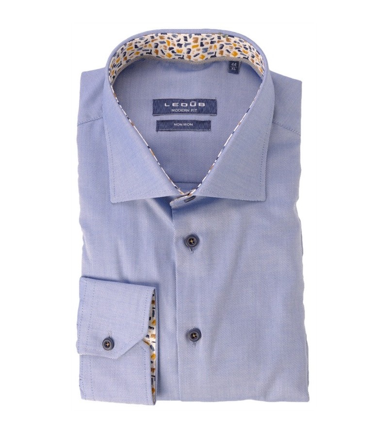 Tall Man Hemd lange mouw tailored fit strijkvrij italiaanse kraag leuk motief sportief comfortabel 100%katoen 40°was kleur: blauw