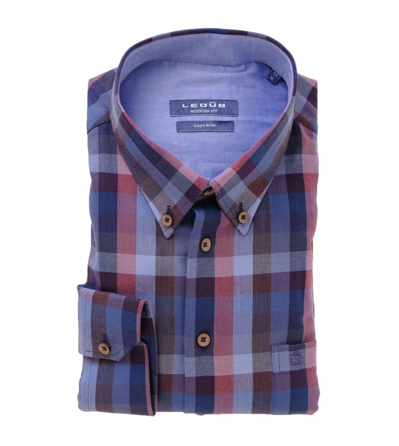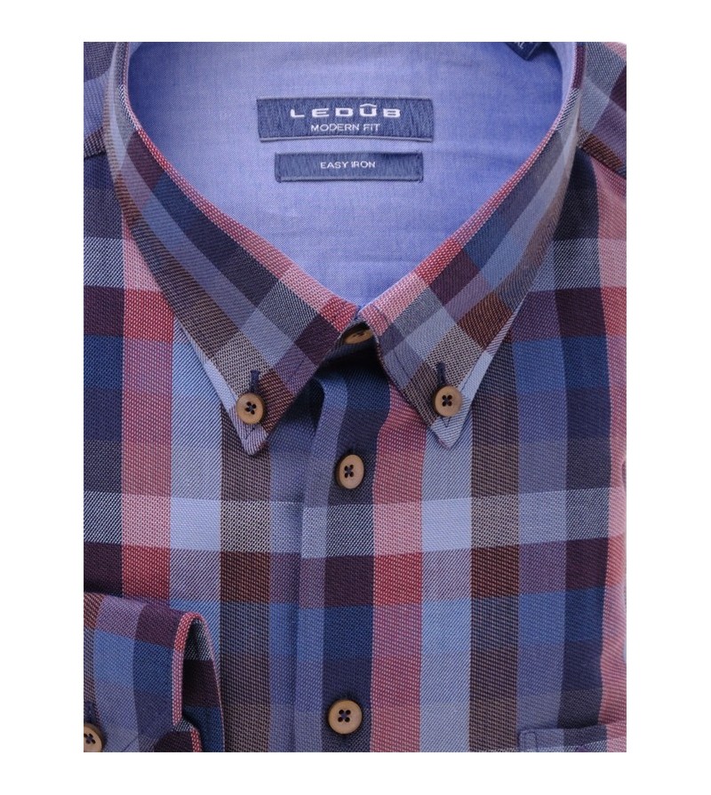 extra lang overhemd regular fit extra lange romplengte, speciaal voor de buik goede pasvorm strijkvrij button down kraag fijn geweven 100%katoen kleur: blauw / bruin