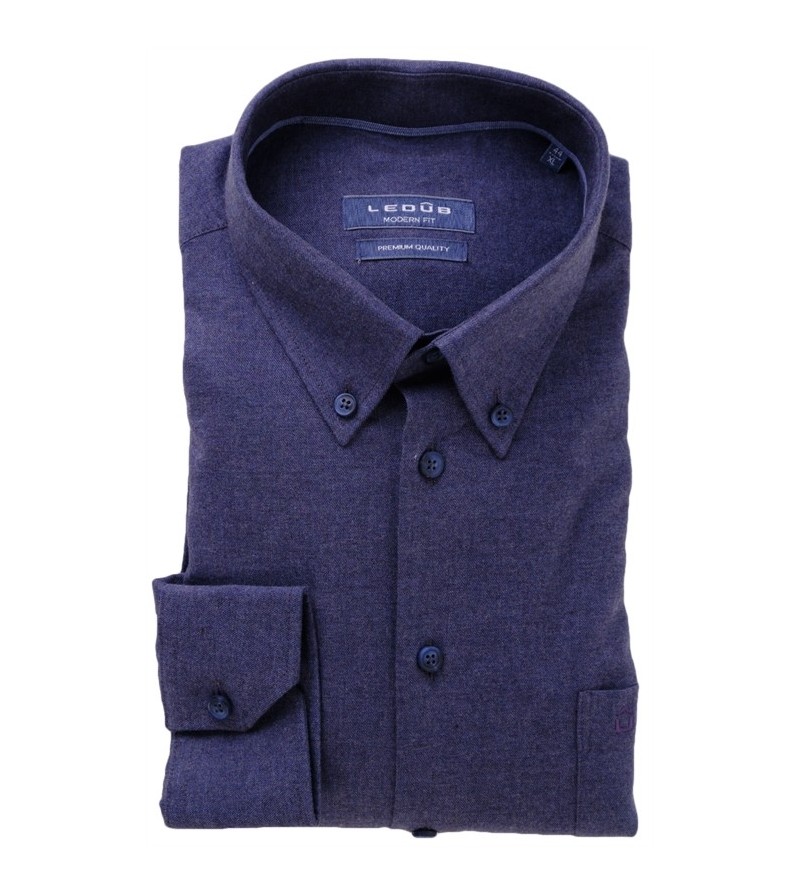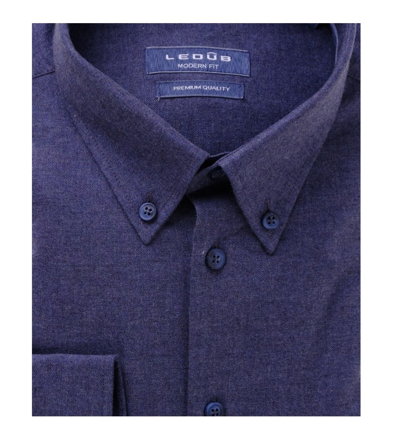 Extra Lang Overhemd regular fit extra lange romplengte, speciaal voor de buik goede pasvorm strijkvrij button down kraag fijn geweven 100%katoen kleur: blauw gemêleerd