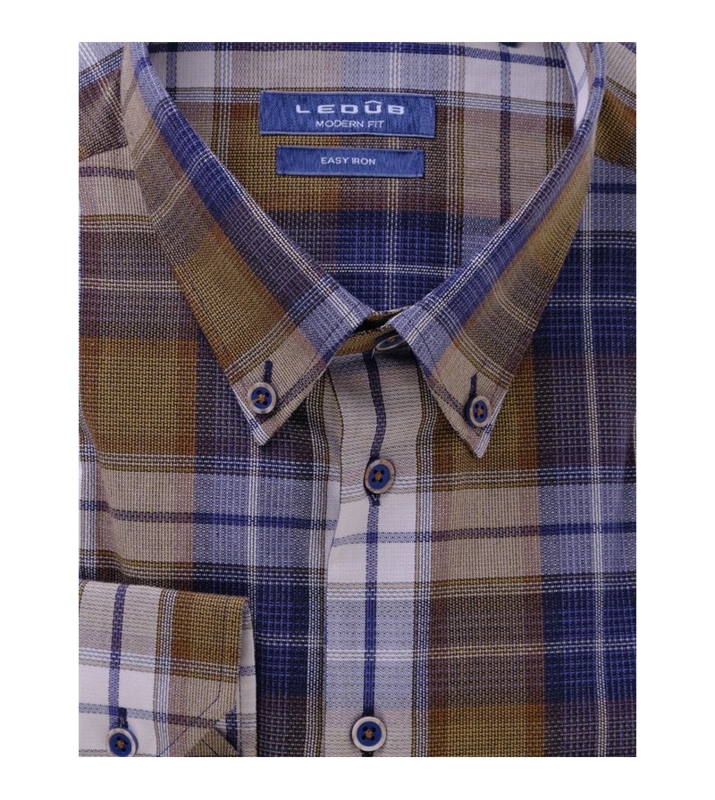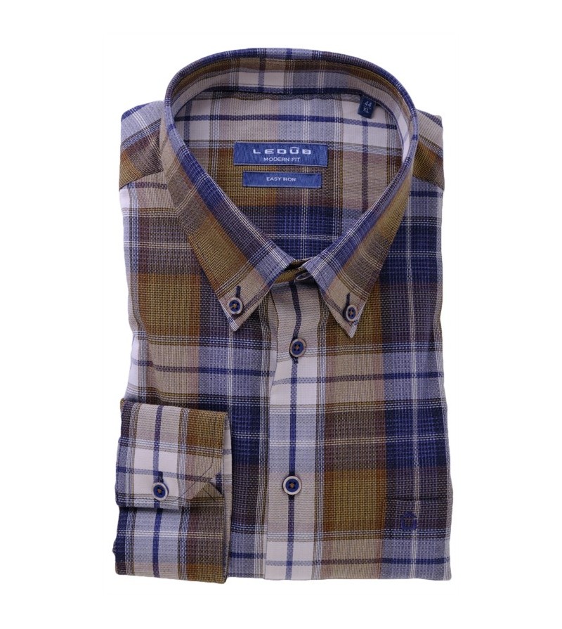 extra lang overhemd regular fit extra lange romplengte, speciaal voor de buik goede pasvorm strijkvrij button down kraag fijn geweven 100%katoen kleur: blauw / bruin
