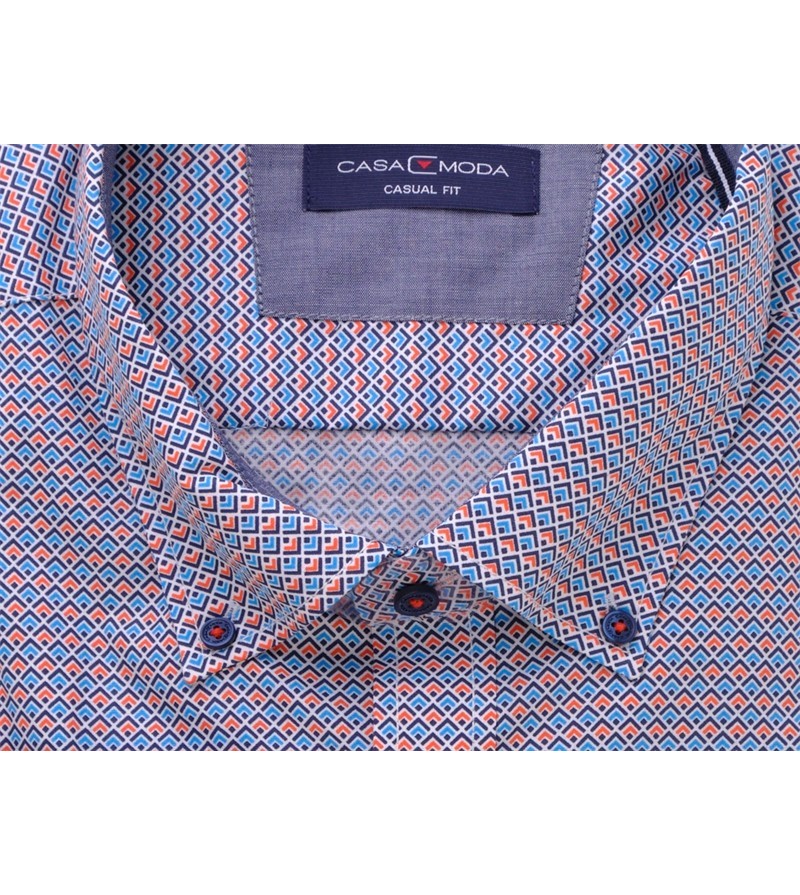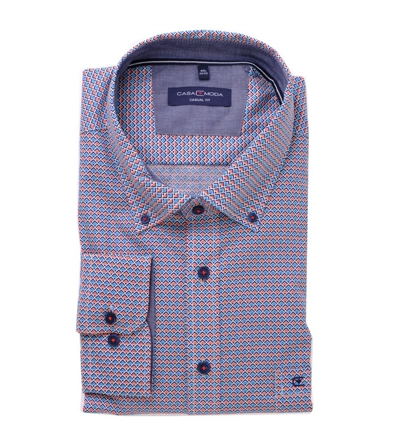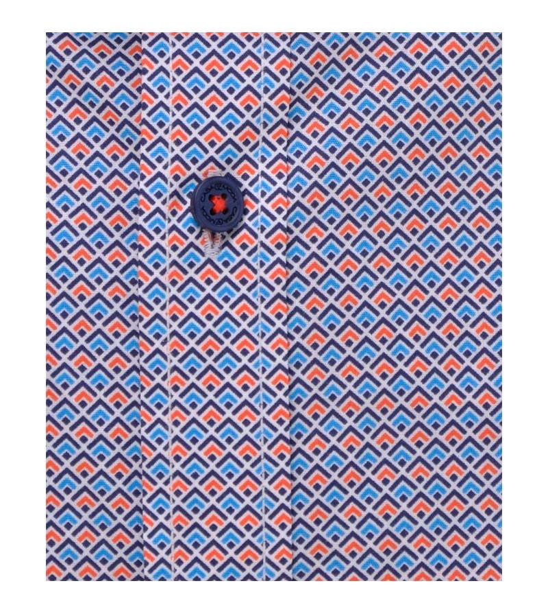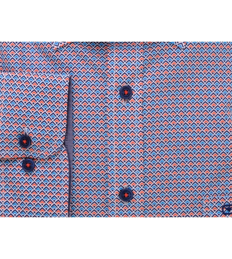 Lengtemaat Hemd extra lange mouw 76 cm tailored fit tot XXLT zonder borstzakje met oranje accenten strijkvrij easy iron kent kraag subtiel motief sportief comfortabel 100%katoen 40°was kleur: blauw, navy, grijs