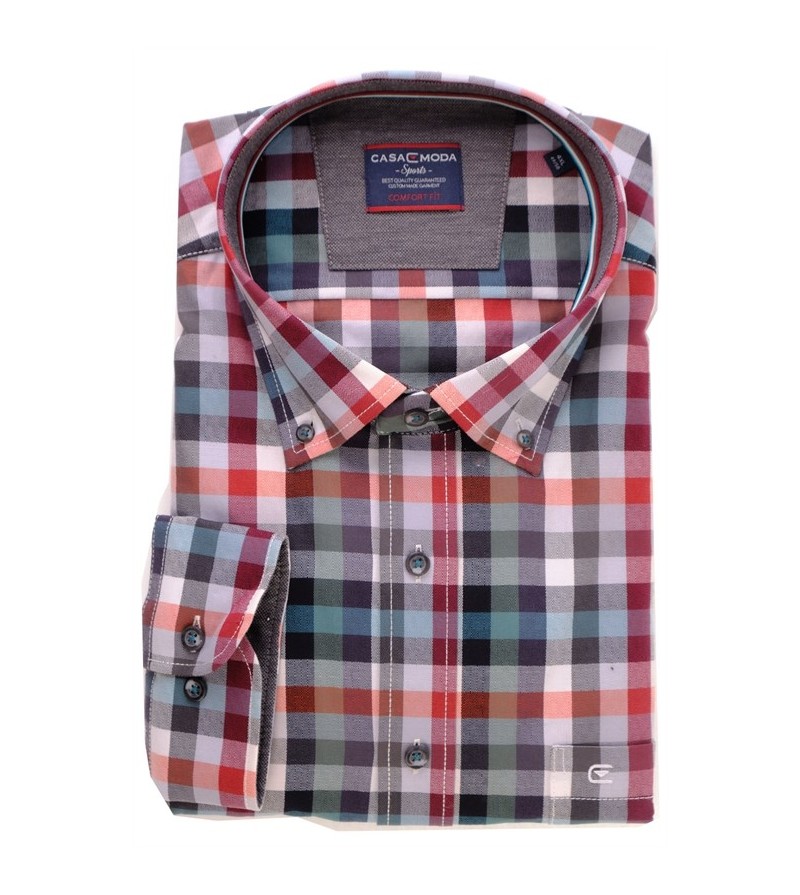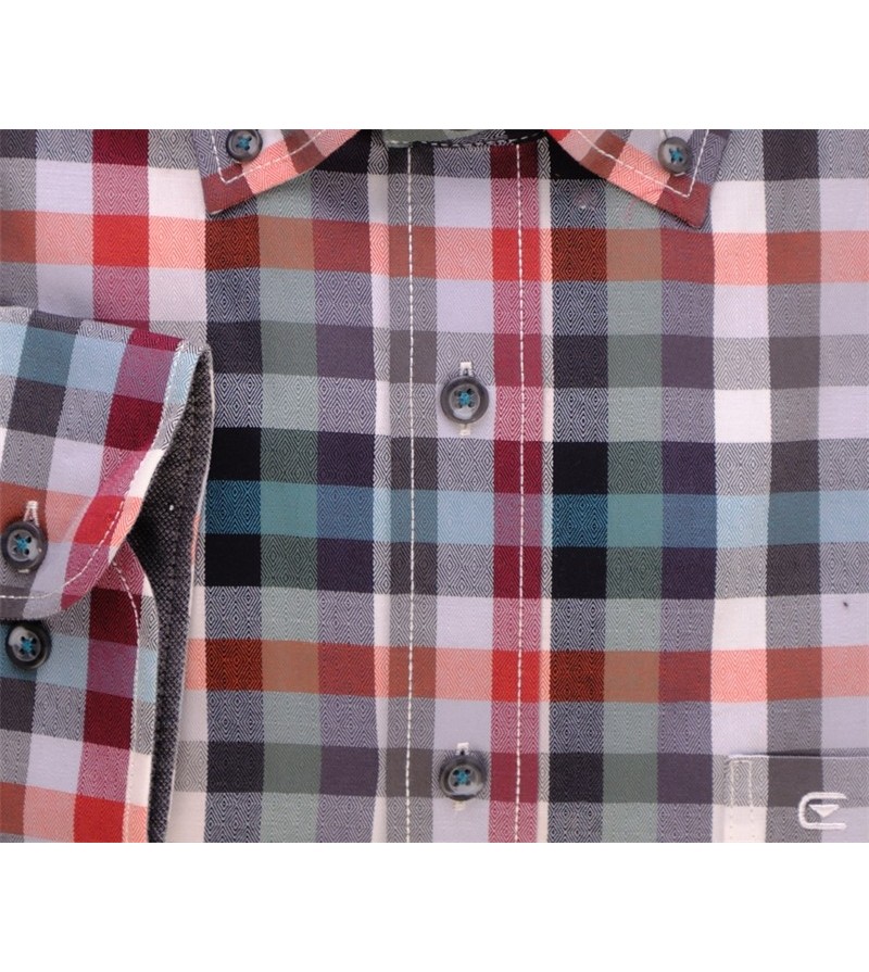 Big Man Hemd comfort fit lange mouwen button down kraag borstzakje subtiele ruitjes comfortabel kwaliteit 100%katoen 40°was