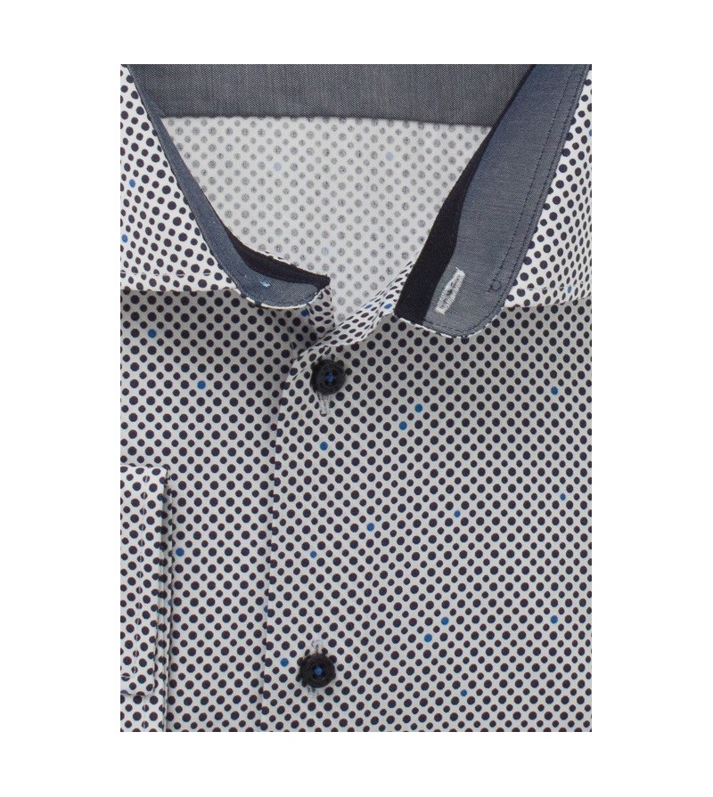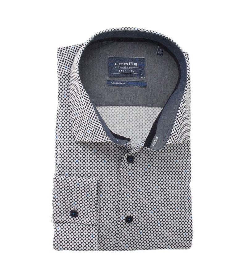 Tall Man Hemd lange mouw tailored fit kent kraag bolletjes motief met navy contrasten sportief netjes afgewerkt comfortabel 100%katoen 40°was kleur: blauw