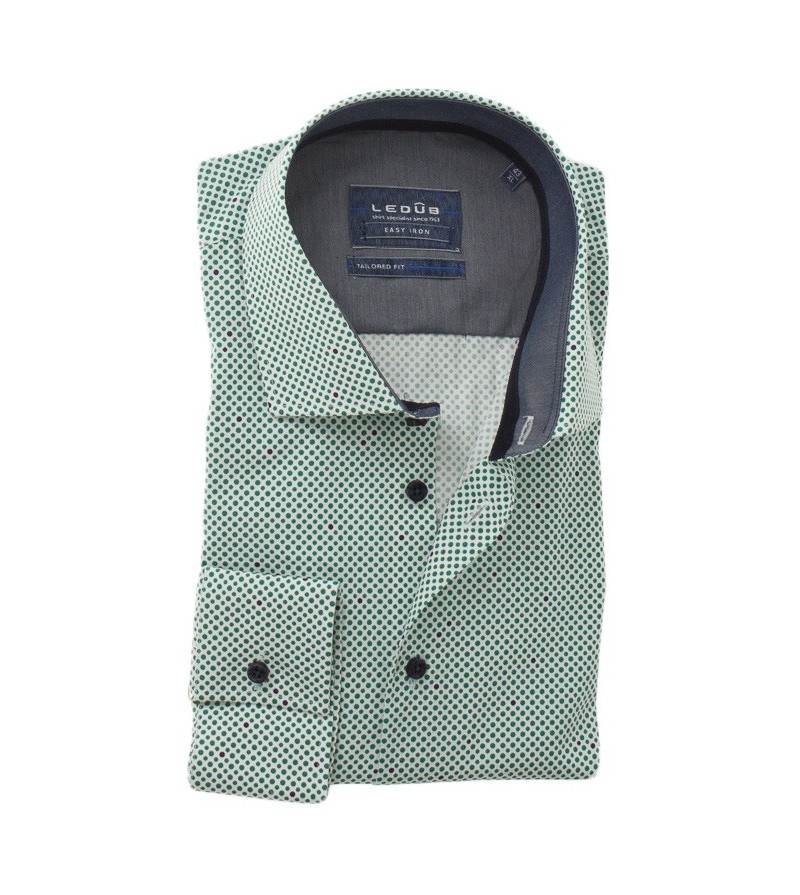 Tall Man Hemd lange mouw tailored fit strijkvrij kent kraag leuk motief netjes afgewerkt sportief comfortabel 100%katoen 40°was kleur: groen