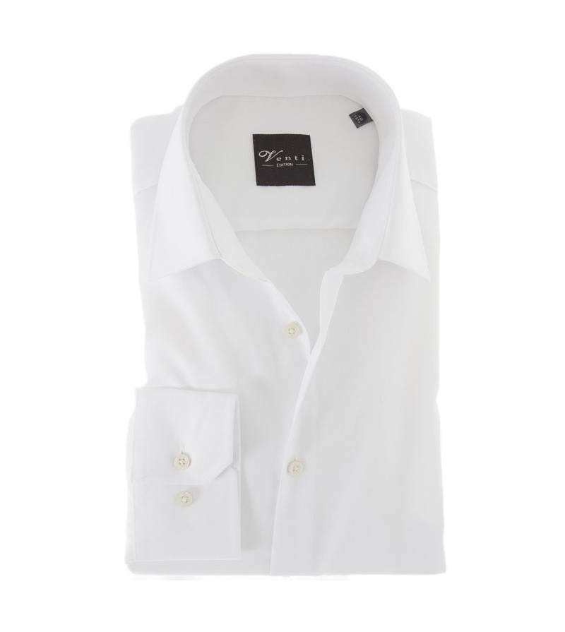 Tailored Fit Hemd lange mouw 76 cm tailored fit geen borstzakje kent kraag non iron netjes afgewerkt 100%katoen 40°was beige knopen beige accenten kleur: wit