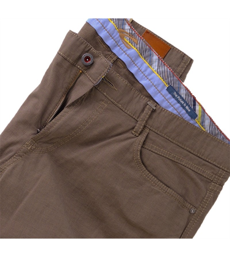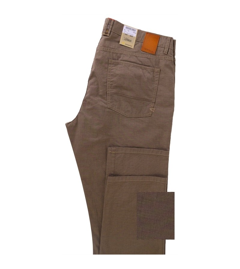 Houston - Tussenbeenlengte 38 model Houston 4888945 8595 18 cotton twill 5 pocket met structuur in stof betere pasvorm 5-pockets 40 inch tussenbeenlengte 98% katoen 2% elastaan kleur: oker