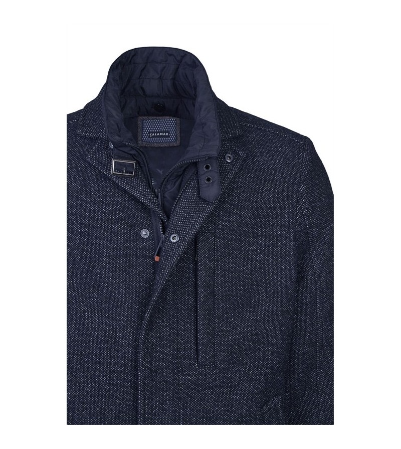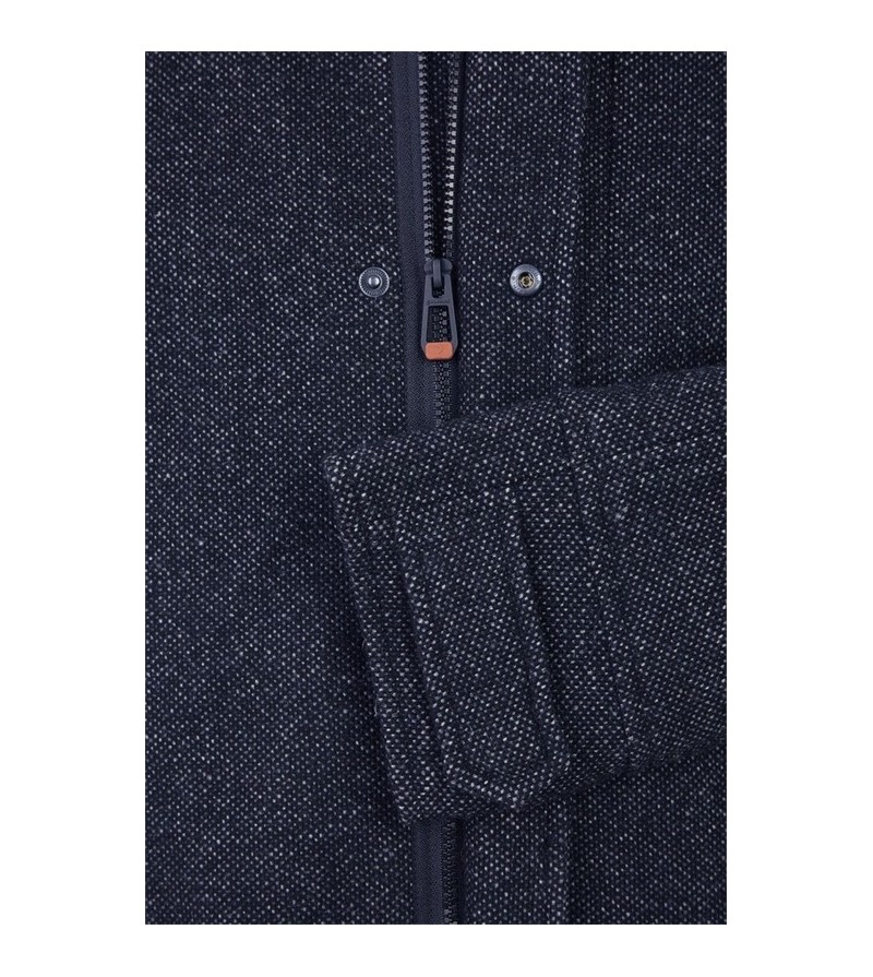 Lengtemaat Jas model: parka met afneembare kap waterdicht ademend winddicht met windstopper in de mouwen mooi structuur in stof 2 zakken met rits 2 opgezette zakken kan voor nette en sportieve gelegenheid 2 binnen zakken 1 binnenzak 100%polyester 30°was kleur: navy