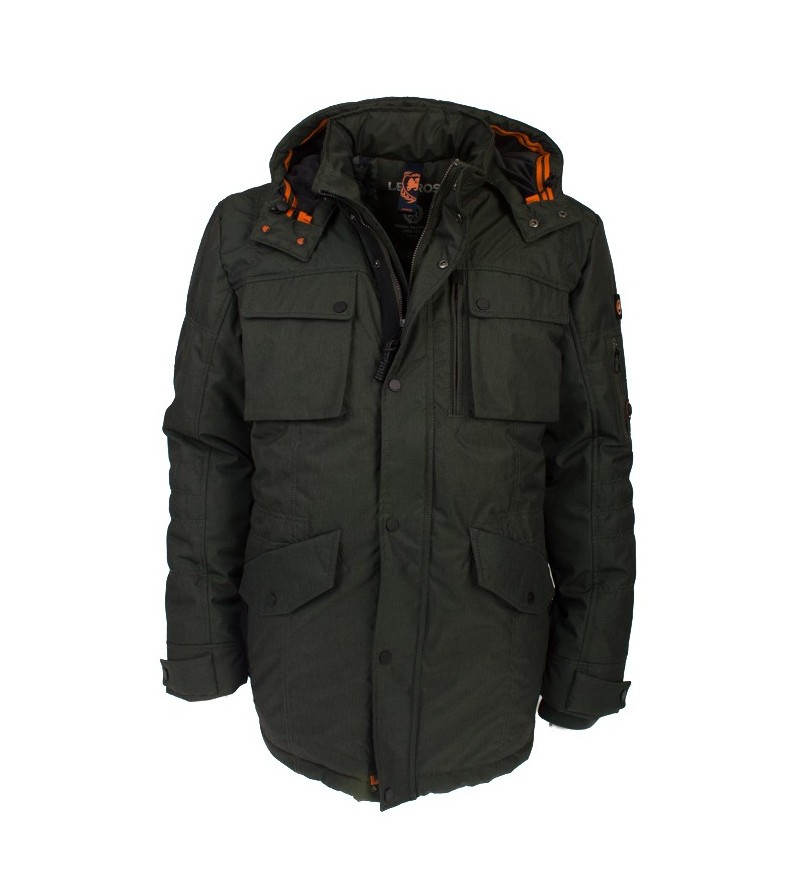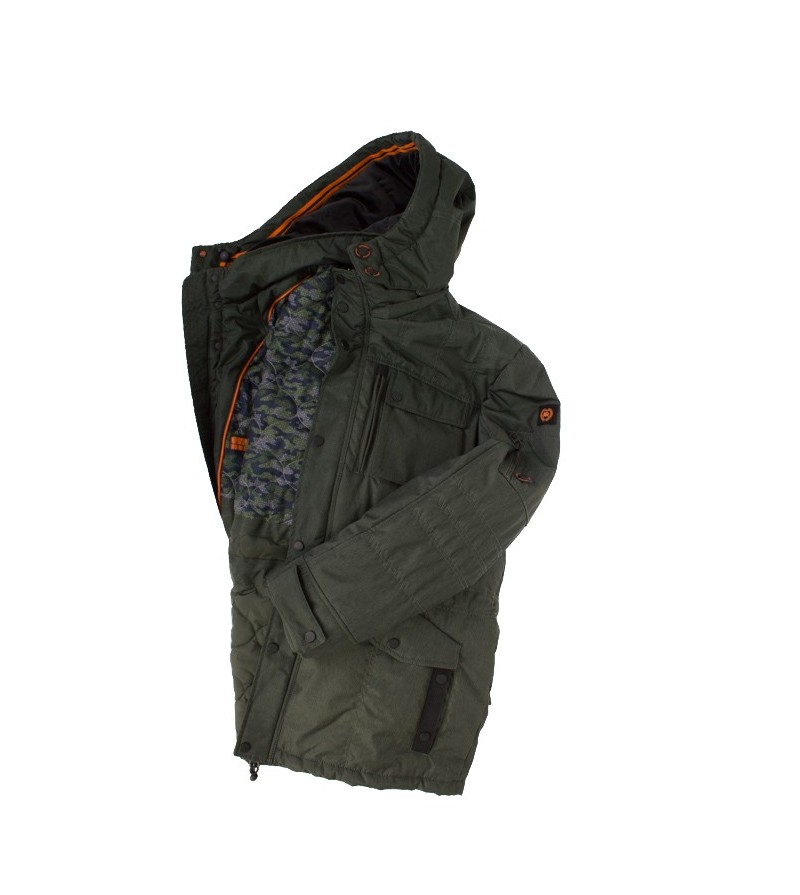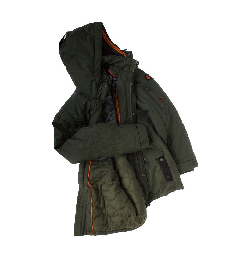 BIG Man Jas met afneembare kap 2 zakken met drukknopen 2 zakken met rits 1 binnenzak outdoorjas winddicht waterbestendig ademend 100%katoen gewaxt afzonderderlijk wassen 30°was kleur: kaki