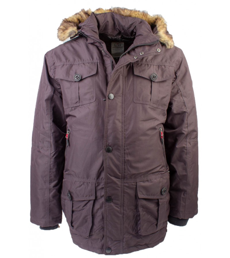 Grote Maten Jas parka met veel zakken afneembaar bondje met manchetten met afneembare kap regenbestanding winddicht 100% kleur vast 100%poleyster met 2 binnenzakken kleur: bruin