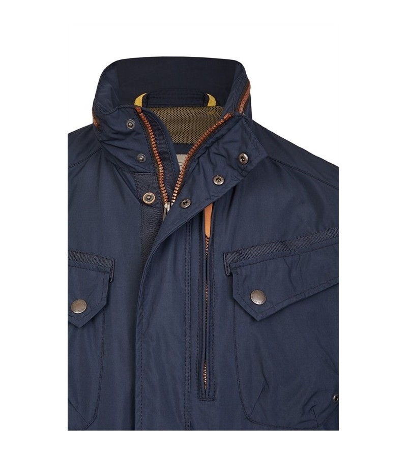 Tall Man Jas met afneembare kap 2 zakken met drukknopen 2 zakken met rits 1 binnenzak outdoorjas winddicht waterbestendig ademend 100%katoen gewaxt afzonderderlijk wassen 30°was kleur: navy
