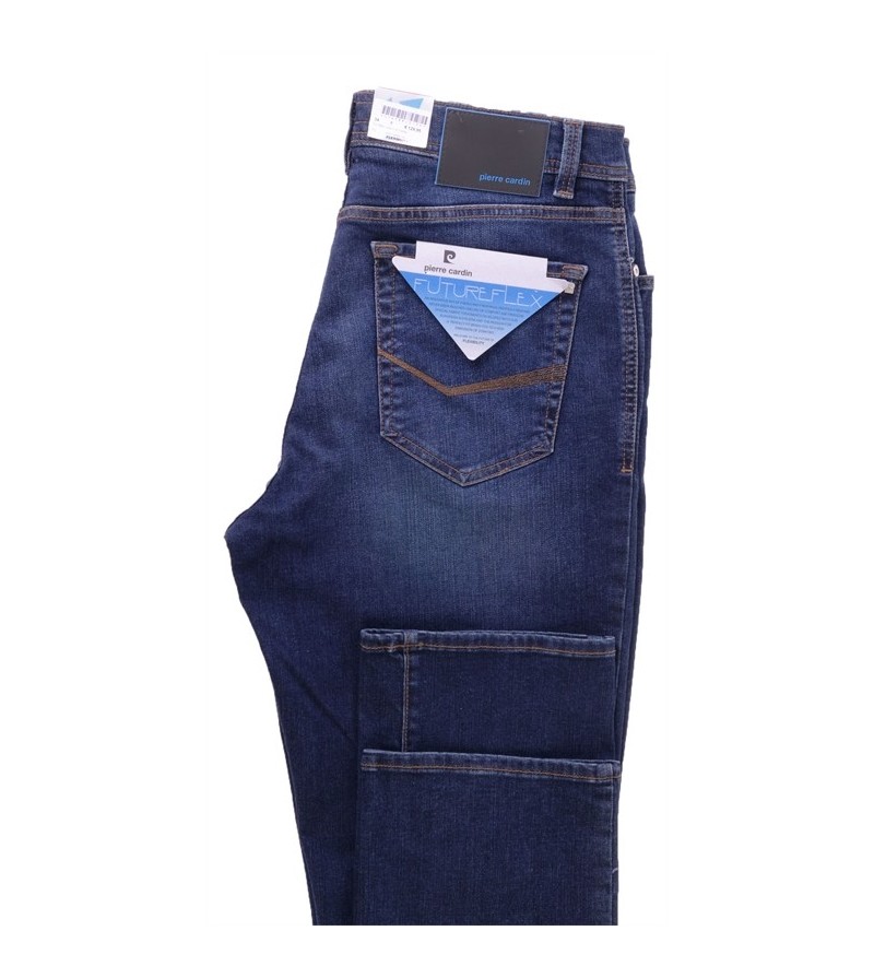 Futureflex - Tussenbeenlengte 34 lage taille futureflex 5 pocket donkere kleur netjes lusjes voor riem comfortabel 73%katoen, 18%poleyster 8%viscose 30°was 100% kleurvast kleur: navy washed denim