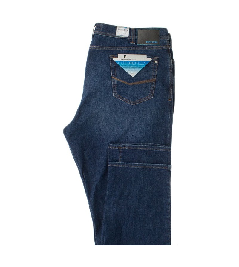 Futureflex - Tussenbeenlengte 34 lage taille futureflex 5 pocket donkere kleur netjes lusjes voor riem comfortabel 73%katoen, 18%poleyster 8%viscose 30°was 100% kleurvast kleur: navy washed denim